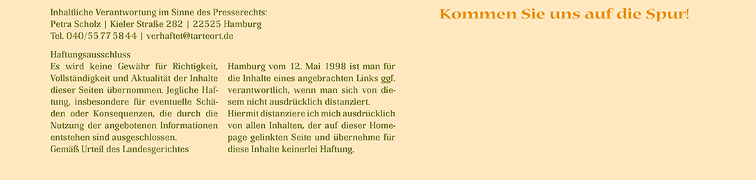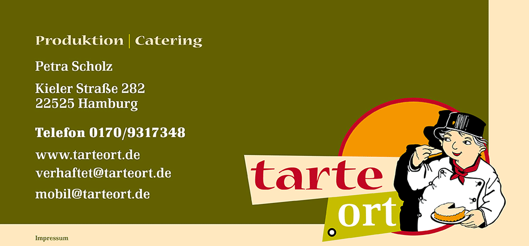 Telefon 040/55775844 www.tarteort.de verhaftet@tarteort.de (Produktion) mobil@tarteort.de (Catering)