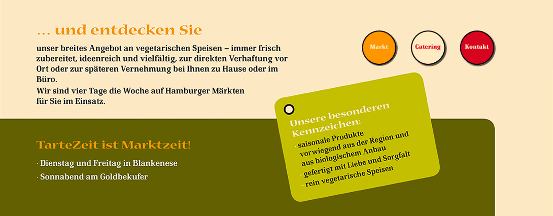 Entdecken Sie unser breites Angebot an vegetarischen Speisen immer frisch zubereitet, ideenreich und vielfältig, zur direkten Verhaftung vor Ort oder zur späteren Vernehmung bei Ihnen zu Hause oder im Büro. Wir sind fünf Tage die Woche auf Hamburger Märkten für Sie im Einsatz.